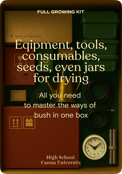 Truly, a marvellous item! All you need for growing — in one huge cardboard box: the lights, the pumps, some watering cans, vents, tubings, filters & every tiny thing you’ll need, seed to joint